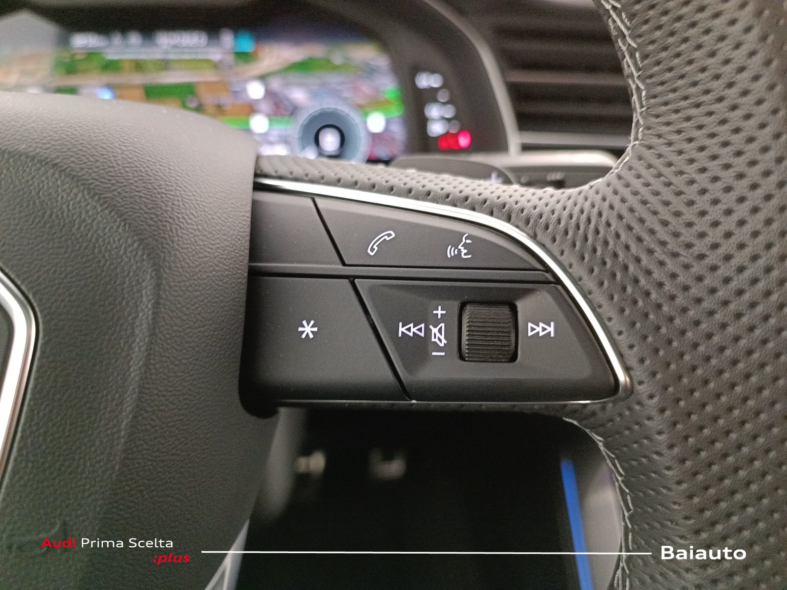 Volante sportivo multifunzionale in pelle traforata a 3 razze con