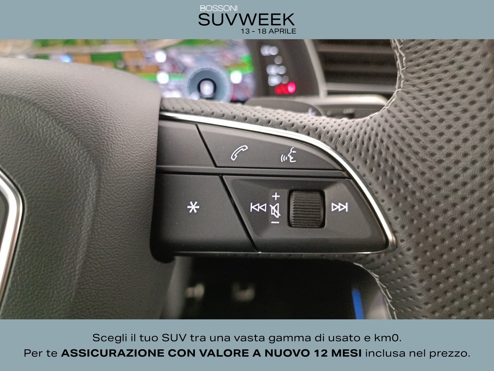 Volante sportivo multifunzionale in pelle traforata a 3 razze con
