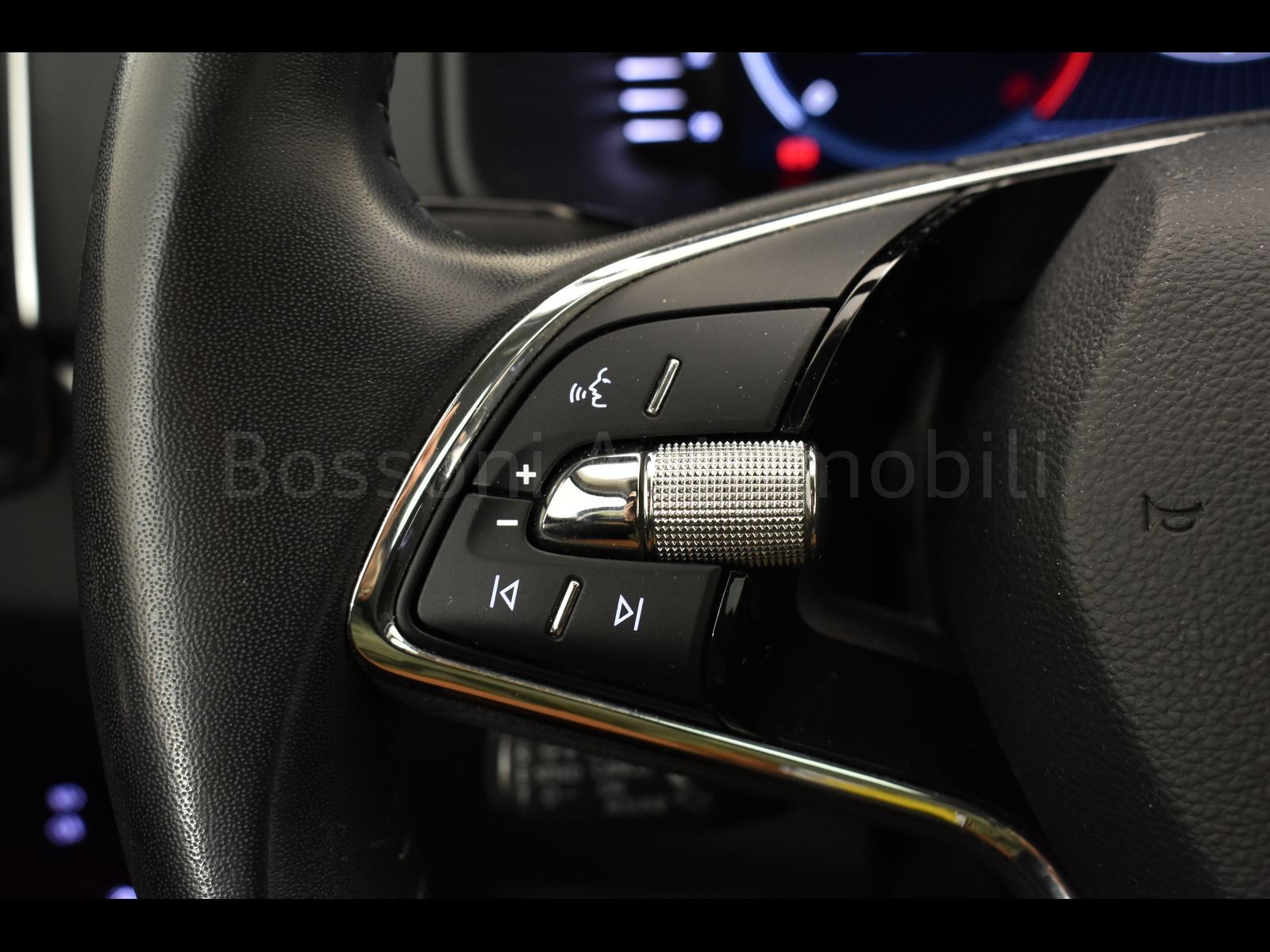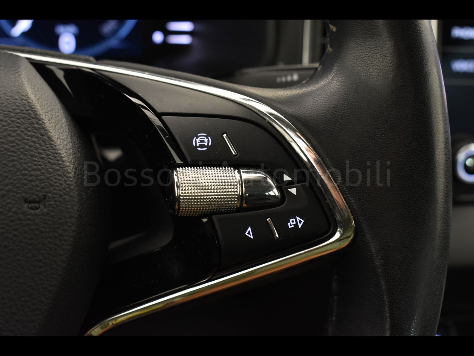 Volante multifunzione a due razze in pelle con inserti cromati