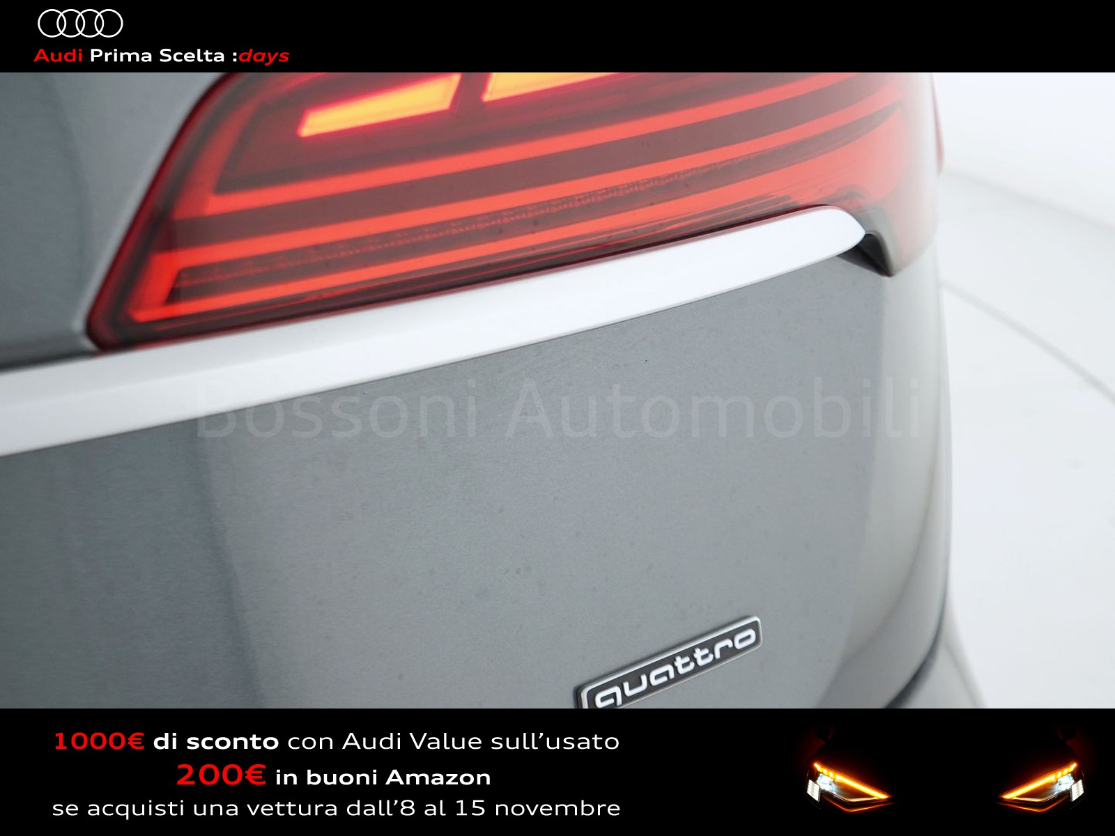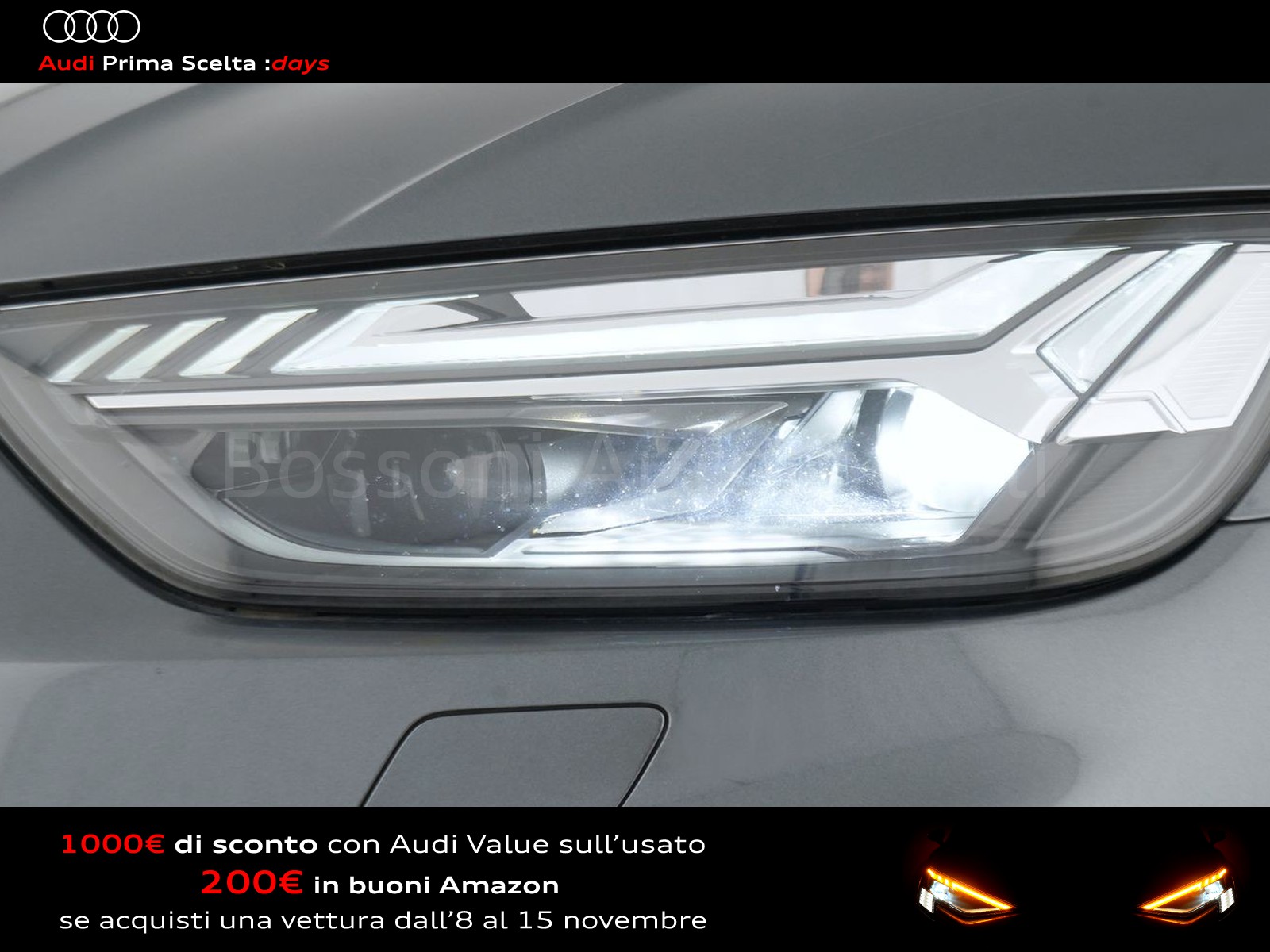 Se l'auto dei tuoi sogni fosse un usato Audi Prima Scelta :plus? Affidatevi all'accuratezza dei nostri 110 controlli, che assicurano lo stesso livello di esclusività e avanguardia delle Audi nuove. Ecco perché siamo sicuri della qualità delle nostre auto e possiamo garantirle fino a quattro anni a partire dalla data d'acquisto. Il nostro usato Audi include anche vetture aziendali con meno di 6 mesi o 6.000 chilometri.
