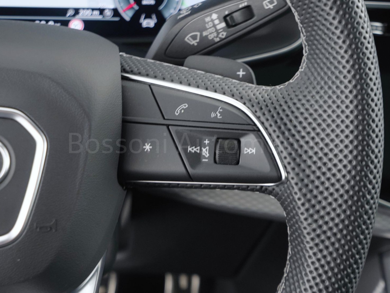 Volante sportivo multifunzionale in pelle traforata a 3 razze con