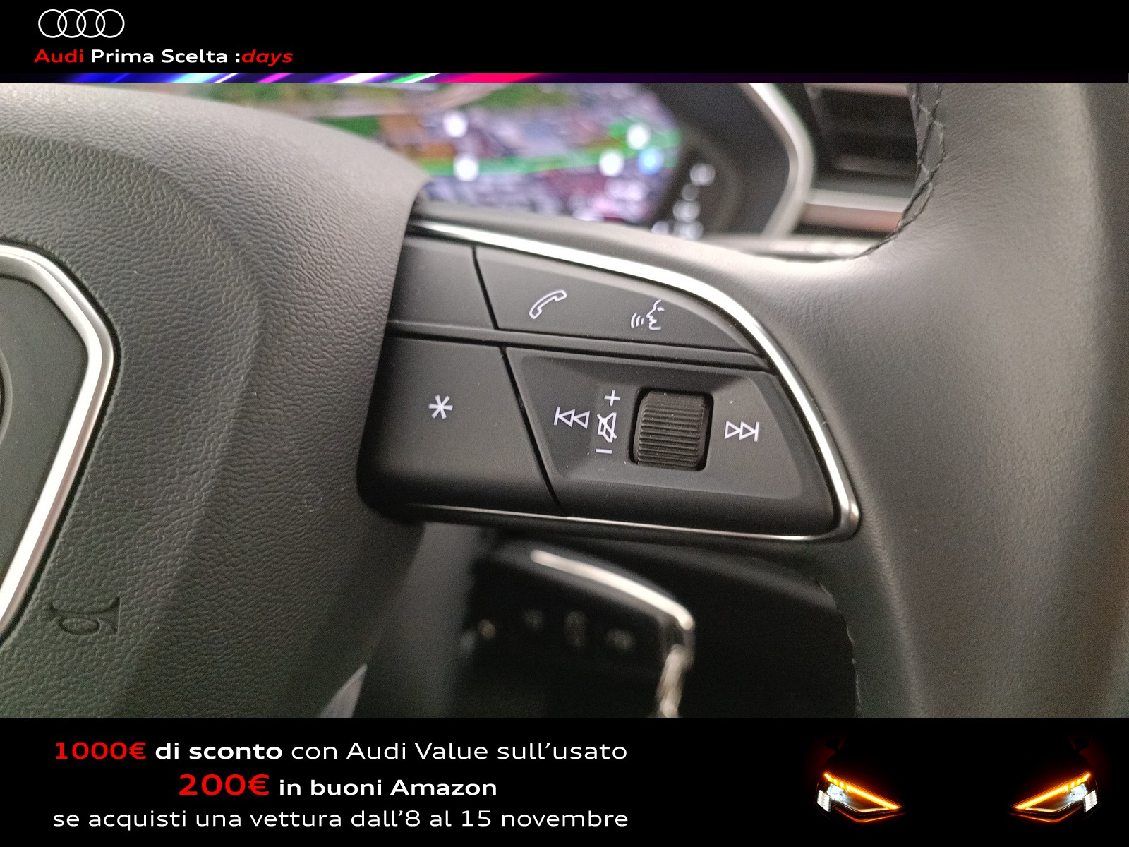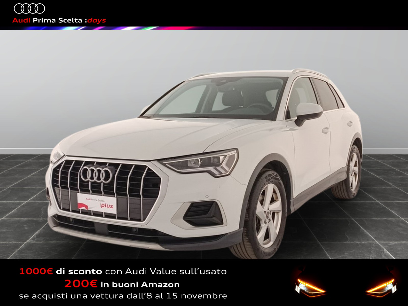 Se l'auto dei tuoi sogni fosse un usato Audi Prima Scelta :plus? Affidatevi all'accuratezza dei nostri 110 controlli, che assicurano lo stesso livello di esclusività e avanguardia delle Audi nuove. Ecco perché siamo sicuri della qualità delle nostre auto e possiamo garantirle fino a quattro anni a partire dalla data d'acquisto. Il nostro usato Audi include anche vetture aziendali con meno di 6 mesi o 6.000 chilometri.