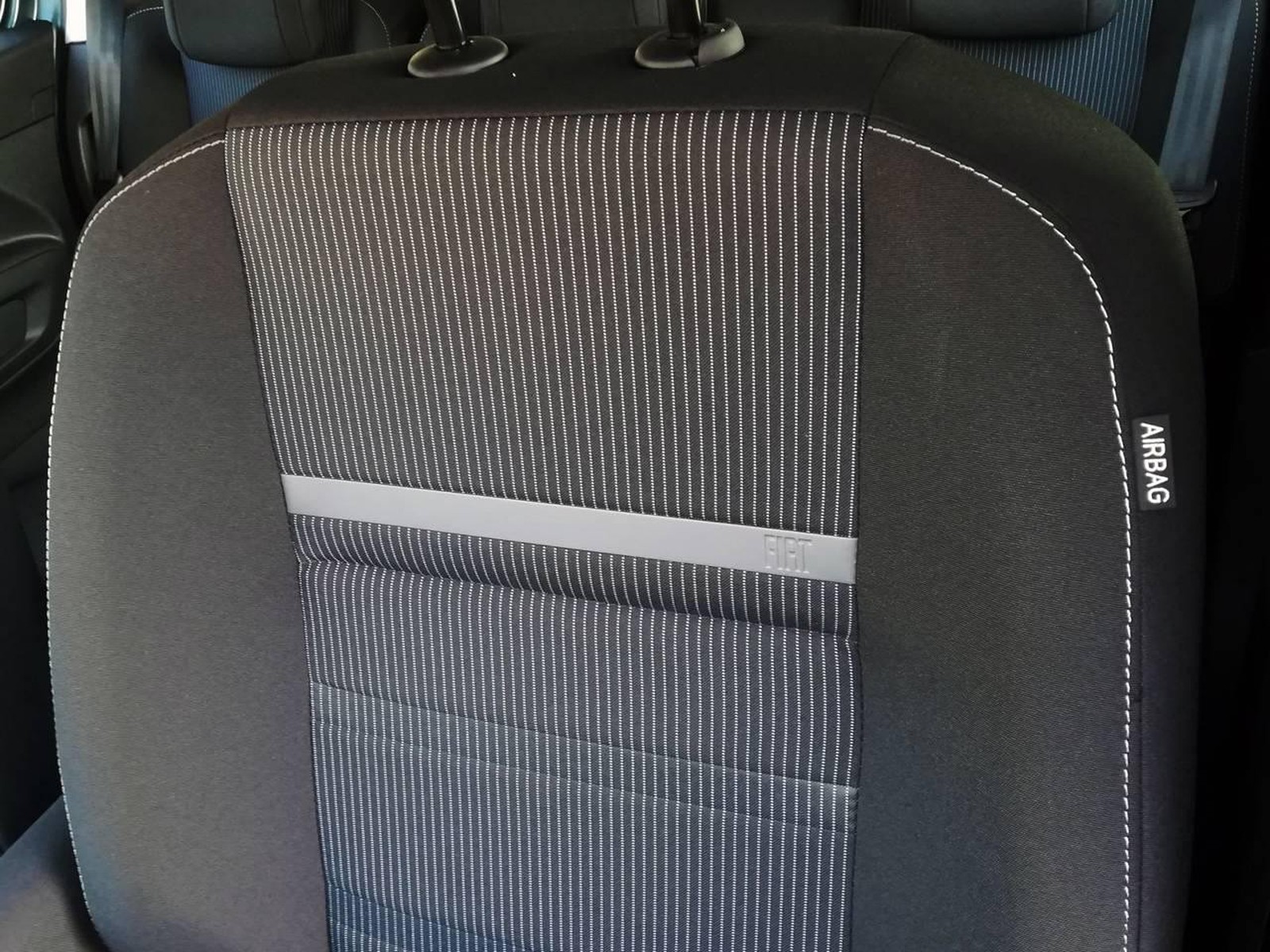 Interni in tessuto grigio con cuciture blu