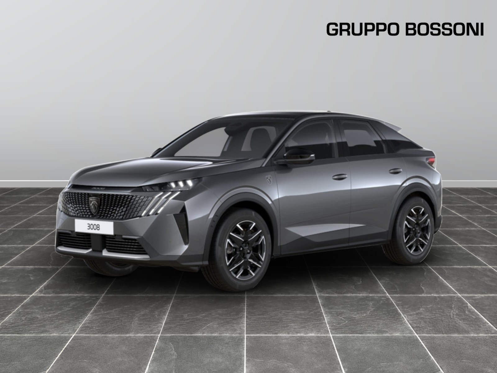 Fascia nera lucida tra i proiettori anteriori con logo «3008»