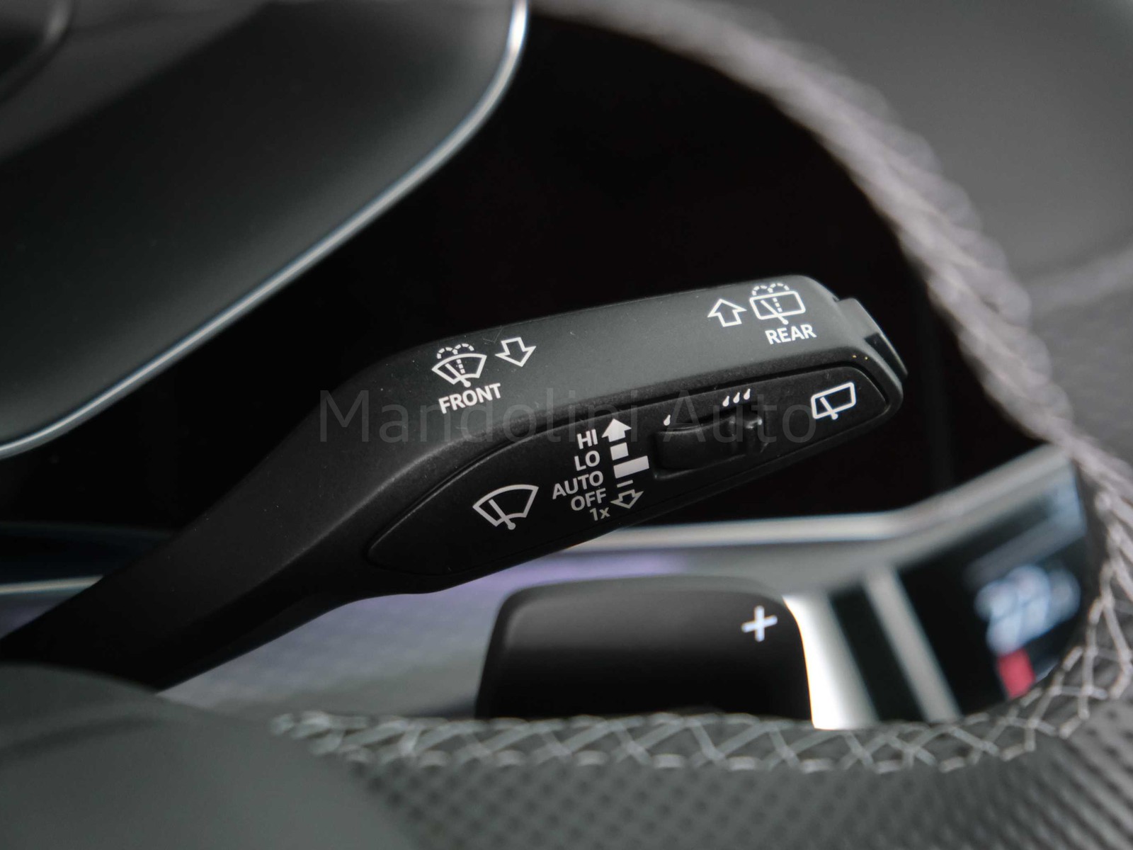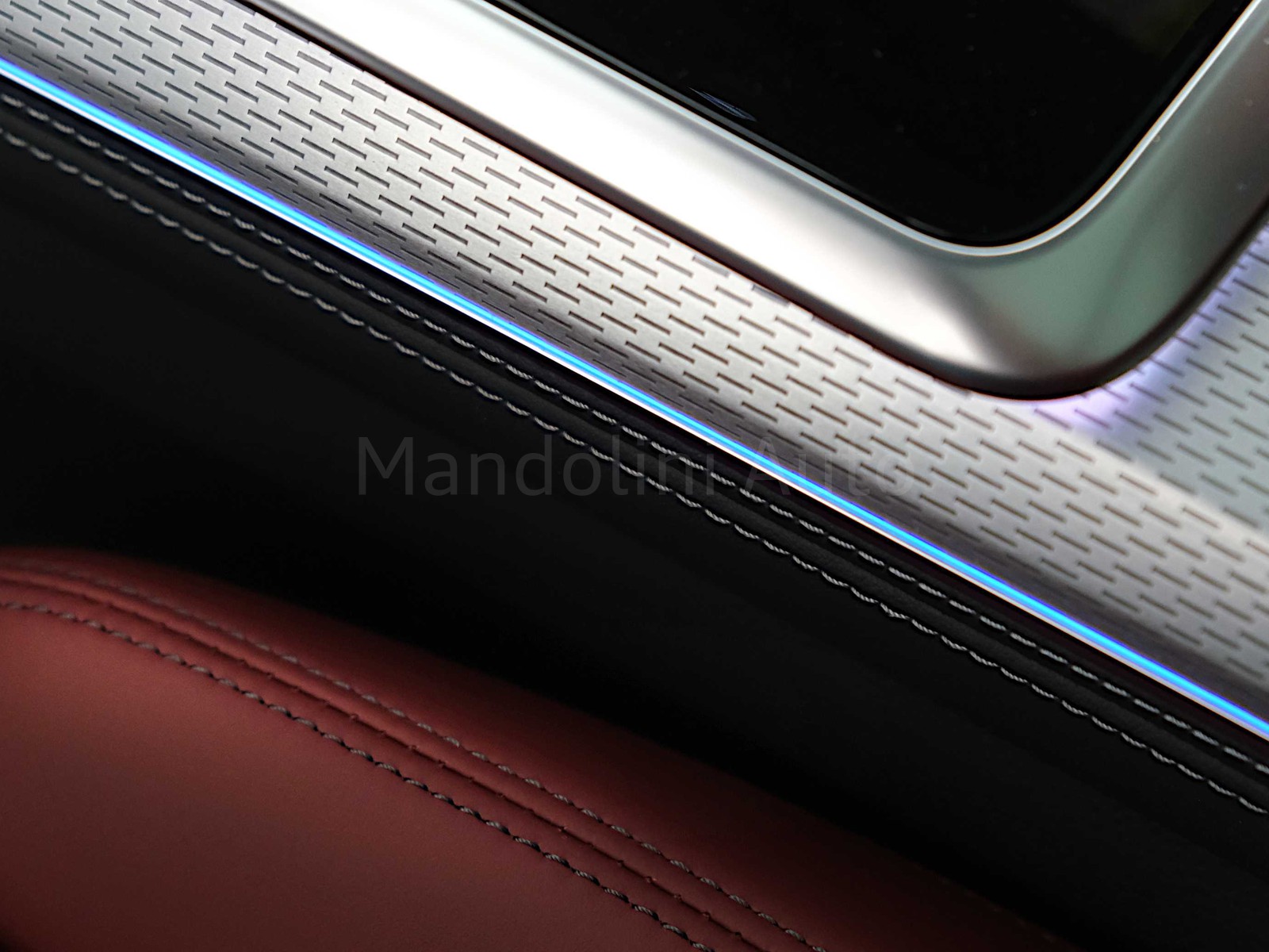 Parte superiore del cruscotto con cuciture in contrasto in grigio