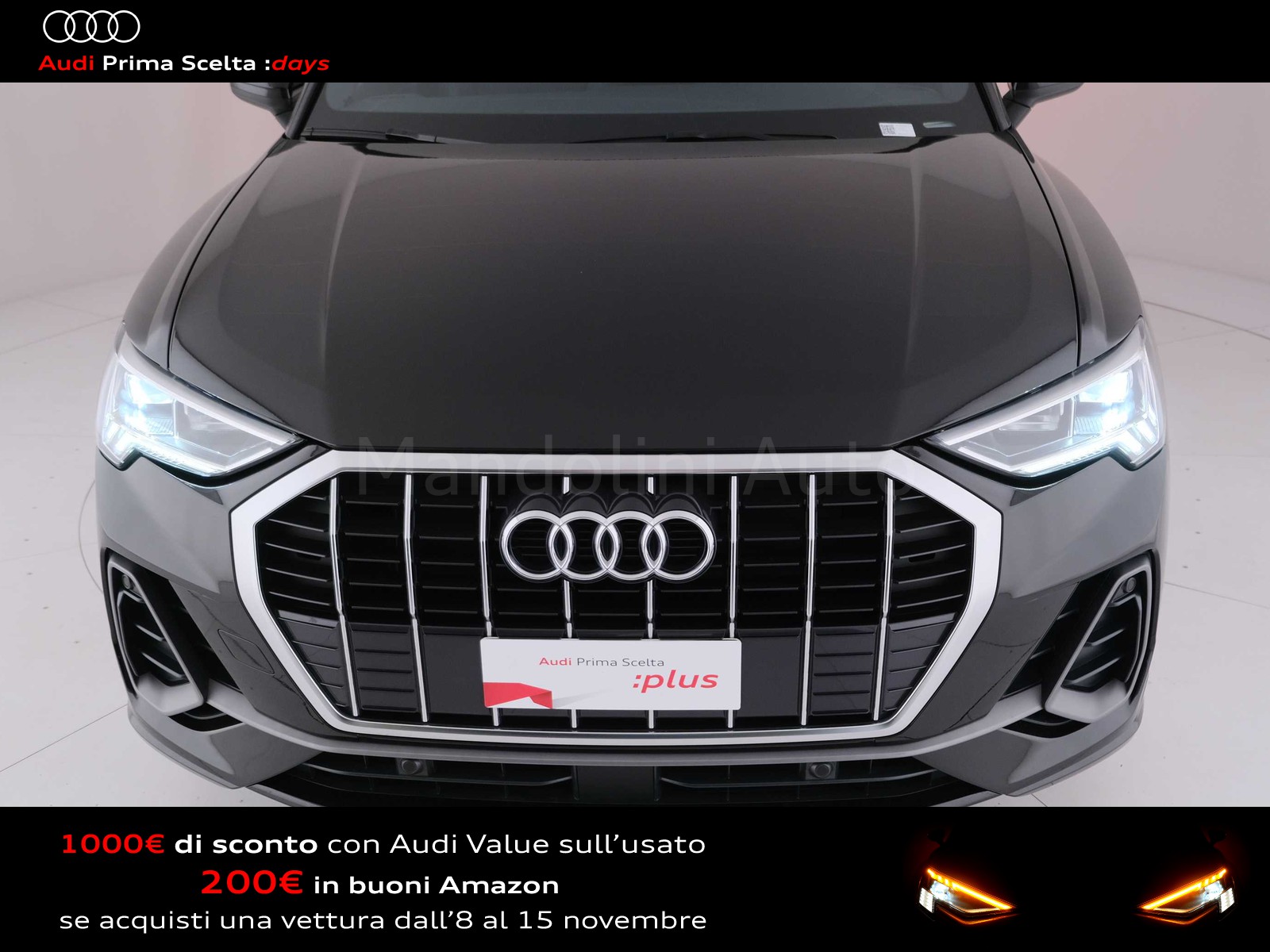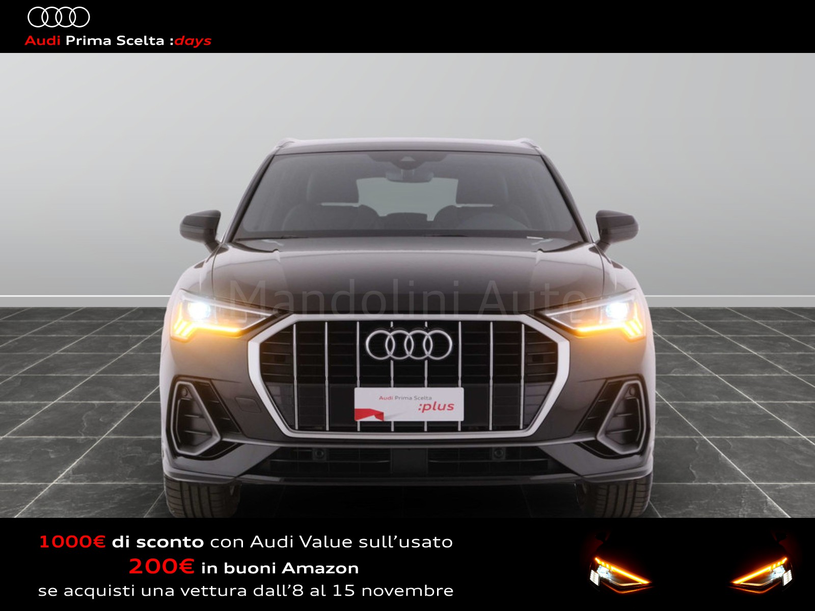 Se l'auto dei tuoi sogni fosse un usato Audi Prima Scelta :plus? Affidatevi all'accuratezza dei nostri 110 controlli, che assicurano lo stesso livello di esclusività e avanguardia delle Audi nuove. Ecco perché siamo sicuri della qualità delle nostre auto e possiamo garantirle fino a quattro anni a partire dalla data d'acquisto. Il nostro usato Audi include anche vetture aziendali con meno di 6 mesi o 6.000 chilometri.