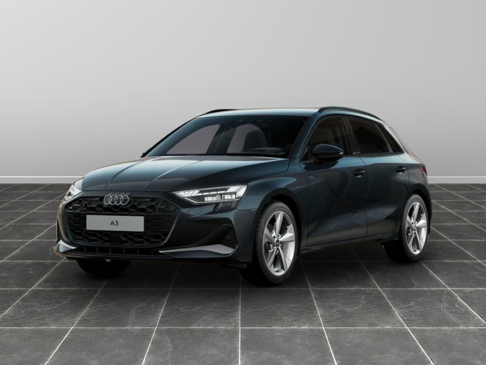 Sedili nero / argento, interni neri, cielo grigio acciaio